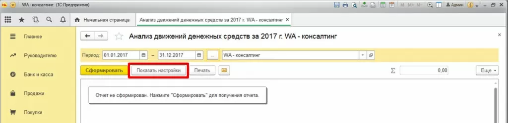 Познакомимся с настройками отчета. Они доступны после нажатия кнопки «Показать настройки».