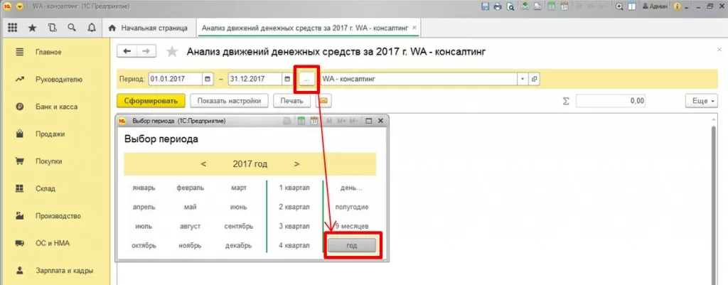 Итак, учимся пользоваться отчетом. Будем формировать отчет ДДС с различными вариантами детализаций, а затем определим оптимальную группировку.