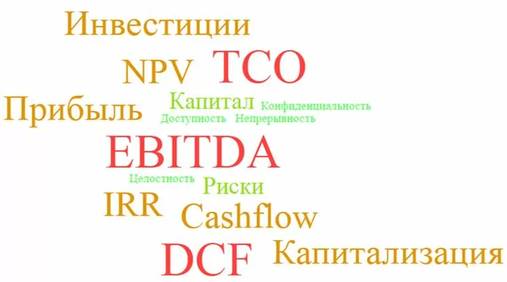 Вот тот язык экономики и финансов, которым оперирует бизнес: инвестиции, ТСО, EBITDA, DCF, Cashflow. Давайте пробежимся по некоторым терминам. Моя цель – чтобы вы узнали, что они означают.