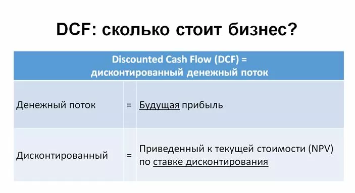 Ну а теперь – сколько же стоит бизнес? У акционеров есть цель – наращивать стоимость бизнеса. А сколько же он стоит? Одним из наиболее популярных на сегодня методов оценки стоимости бизнеса является метод дисконтированных денежных потоков. Звучит страшно, но не пугайтесь, не все так сложно.