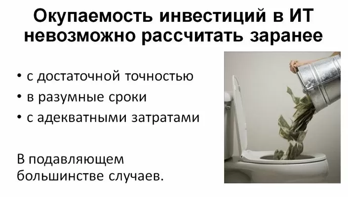 - Окупаемость инвестиций в ИТ невозможно рассчитать заранее