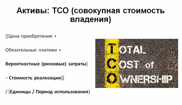 Следующее понятие – это TCO, совокупная стоимость владения, как один из инструментов, с которым можно работать.