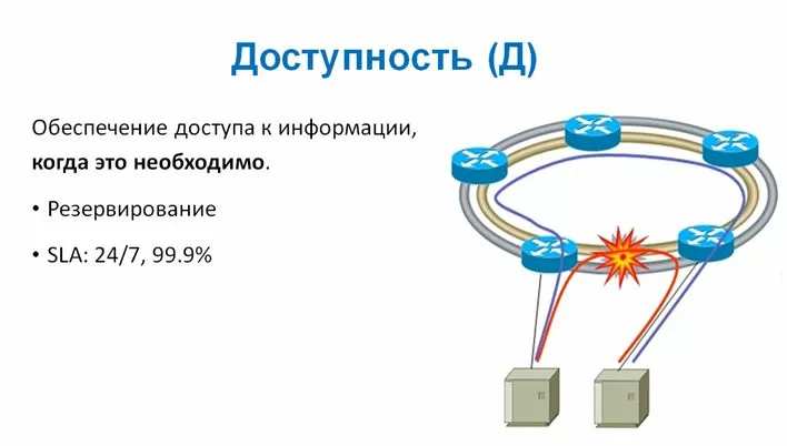 Доступность – обеспечение доступа к информации тогда, когда это необходимо. Речь о: