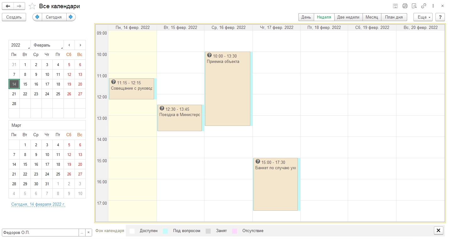 Календарь. Механизм планирования и управления временем, а также координации сотрудников.