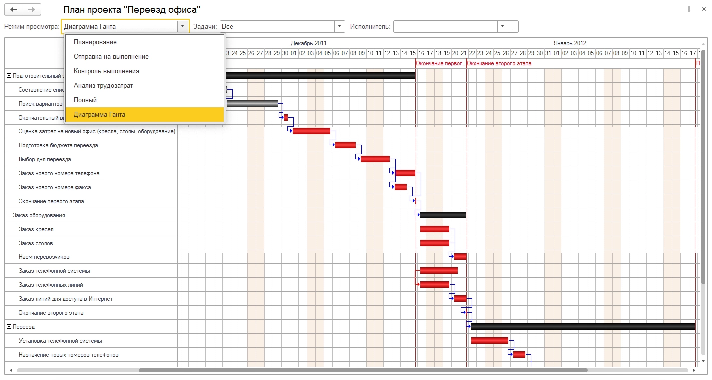 Проекты. СЭД от 1С содержит полноценный функционал для управления проектами. Из карточки проекта можно сразу видеть все те документы, которые созданы в рамках проекта. По проектным задачам можно запускать процессы (например, на исполнение), контролировать сроки выполнения и трудозатраты.