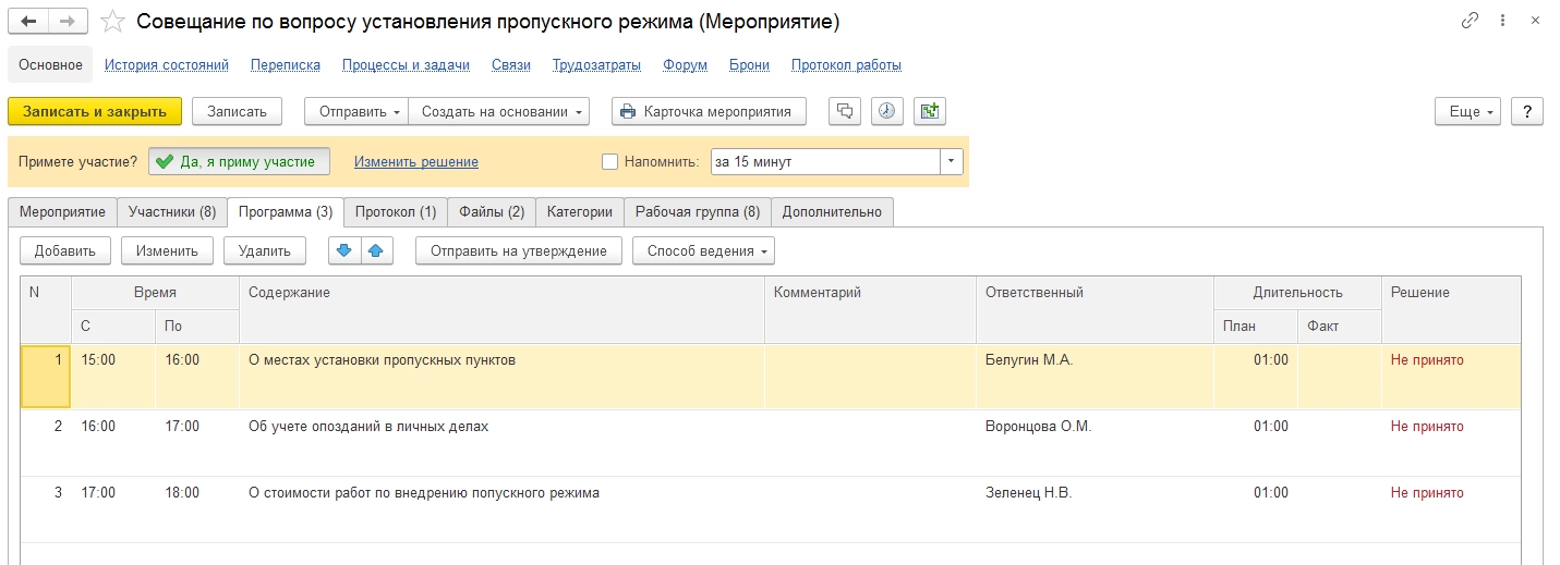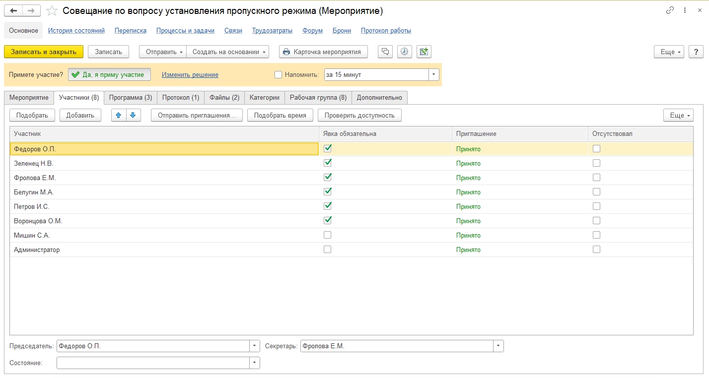 Комплексная автоматизация от 1С:Центра компетенций по документообороту. Оценка проекта бесплатно!Совещания. В программе реализован функционал по управлению совещаниями со всеми его циклами: подготовка, сбор материалов от выступающих, проведение, принятие решений по каждому из вопросов, составление, рассылка и согласование протокола, исполнение решений через механизм процессов, анализ выполнения решений. Есть организации, в которых этот функционал был определяющим фактором для внедрения СЭД.