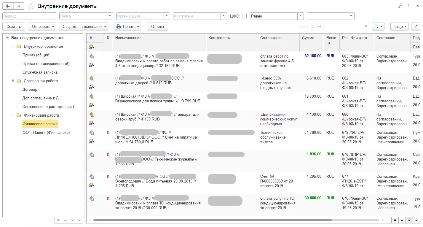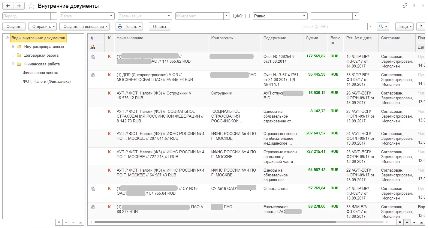 Документы. Управление документами в разрезе организаций, грифов доступа, вопросов деятельности, контрагентов, подразделений, а также любых дополнительных разрезов, которые могут быть добавлены на этапе настройки системы электронного документооборота.