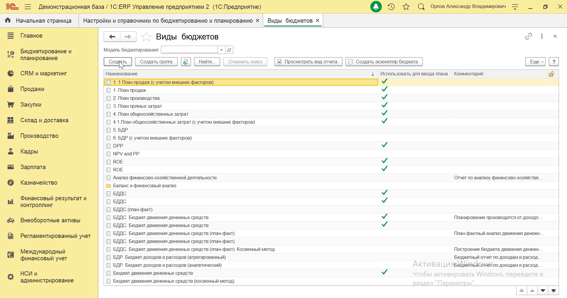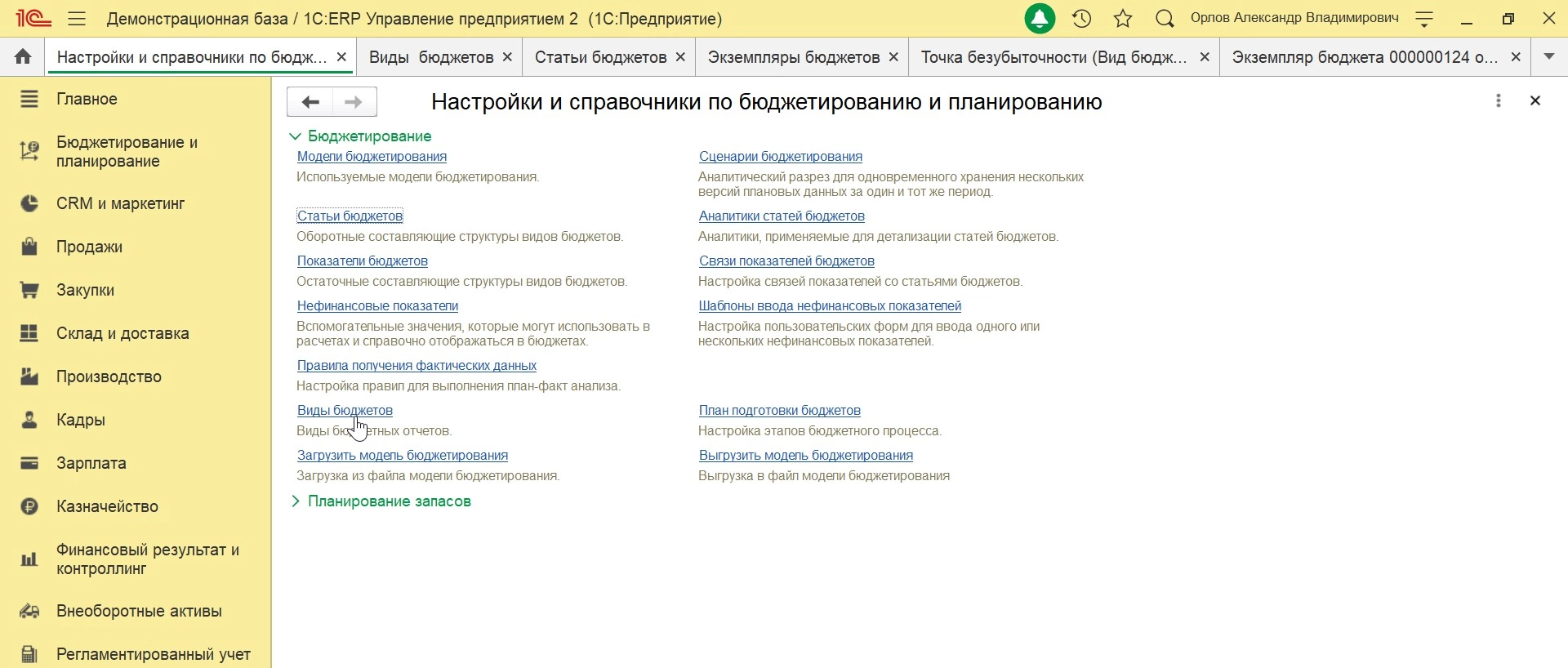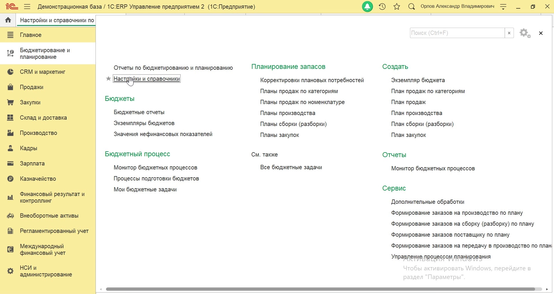 1С:ERP - профессиональное решение для автоматизации бюджетированияПереходим в раздел «Бюджетирование и планирование-Настройки и справочники».