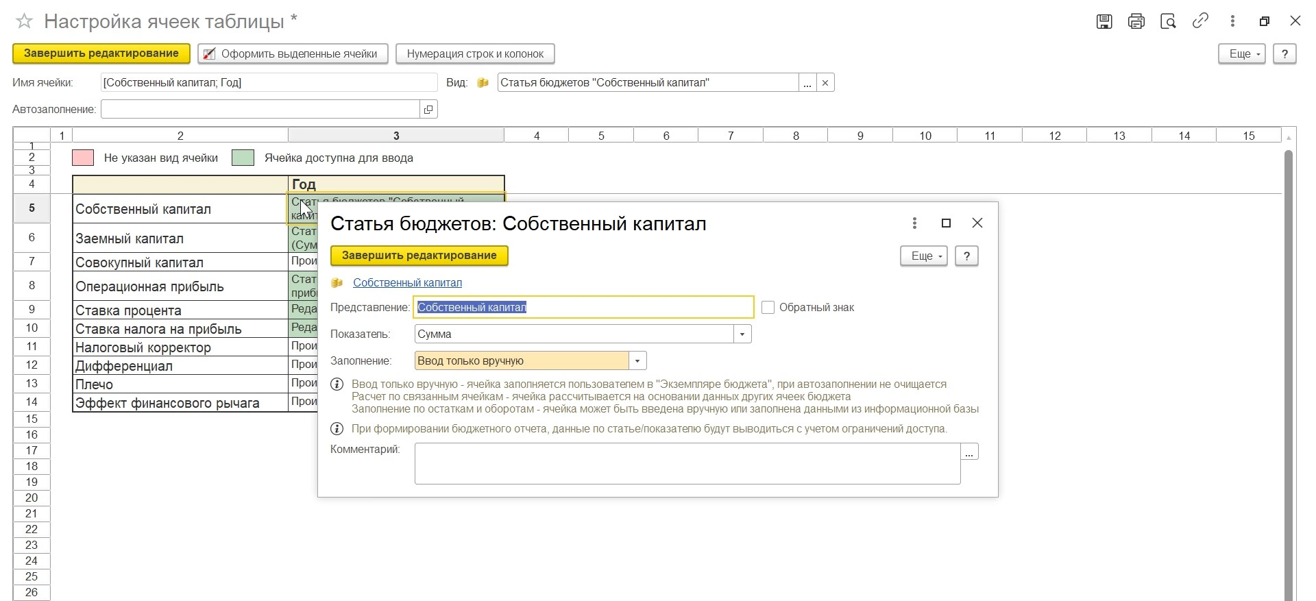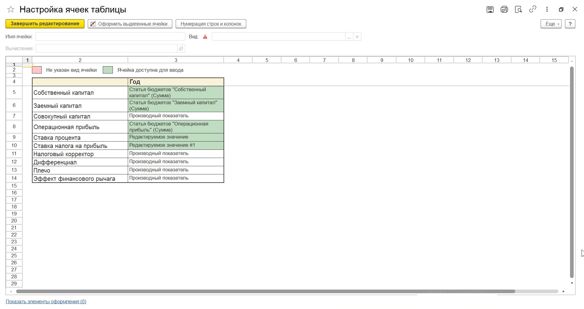 Настраиваем каждую ячейку в зависимости от типа: статья активов и пассивов, строка отчета о финансовых результатах, производный показатель.