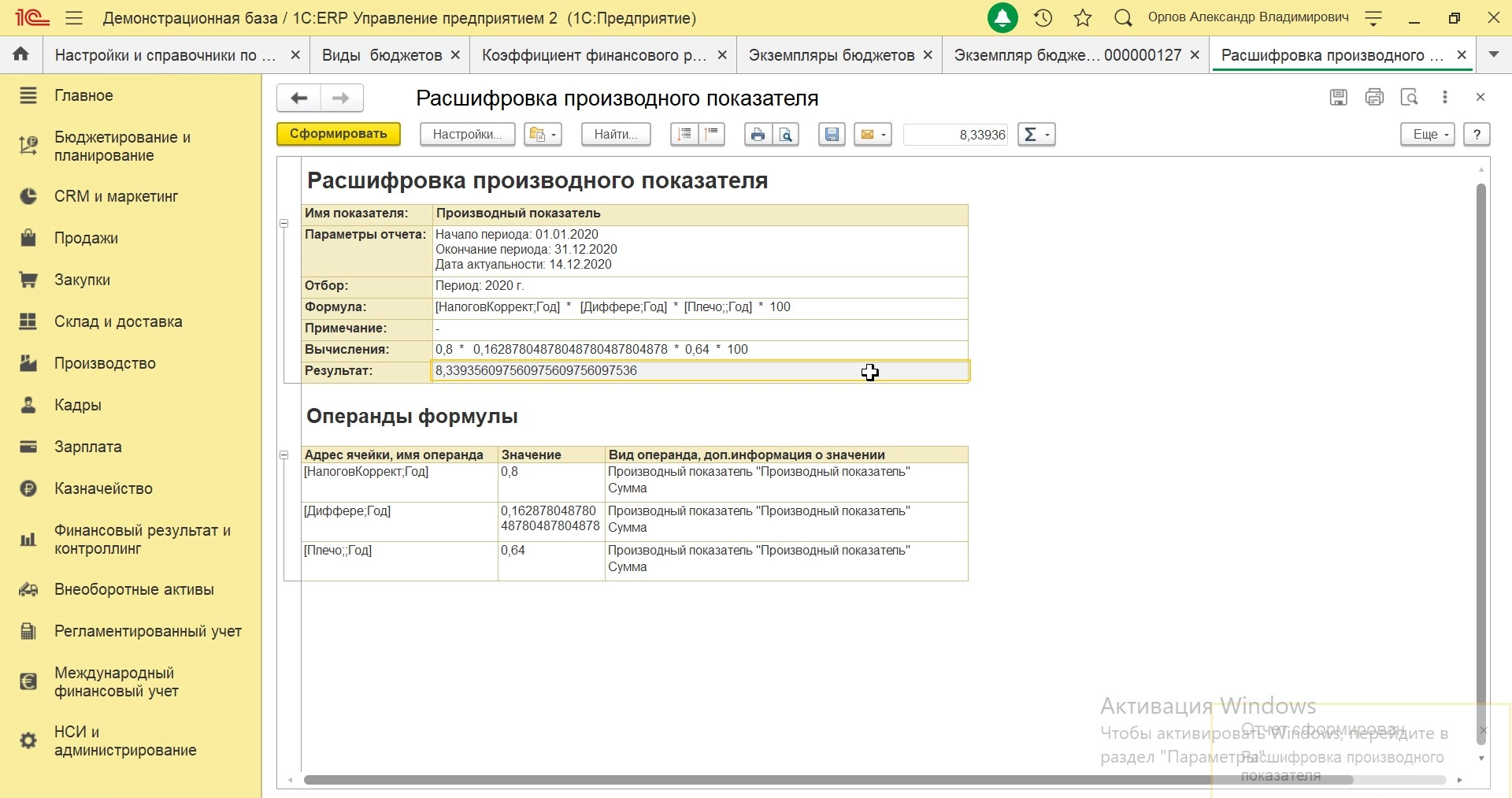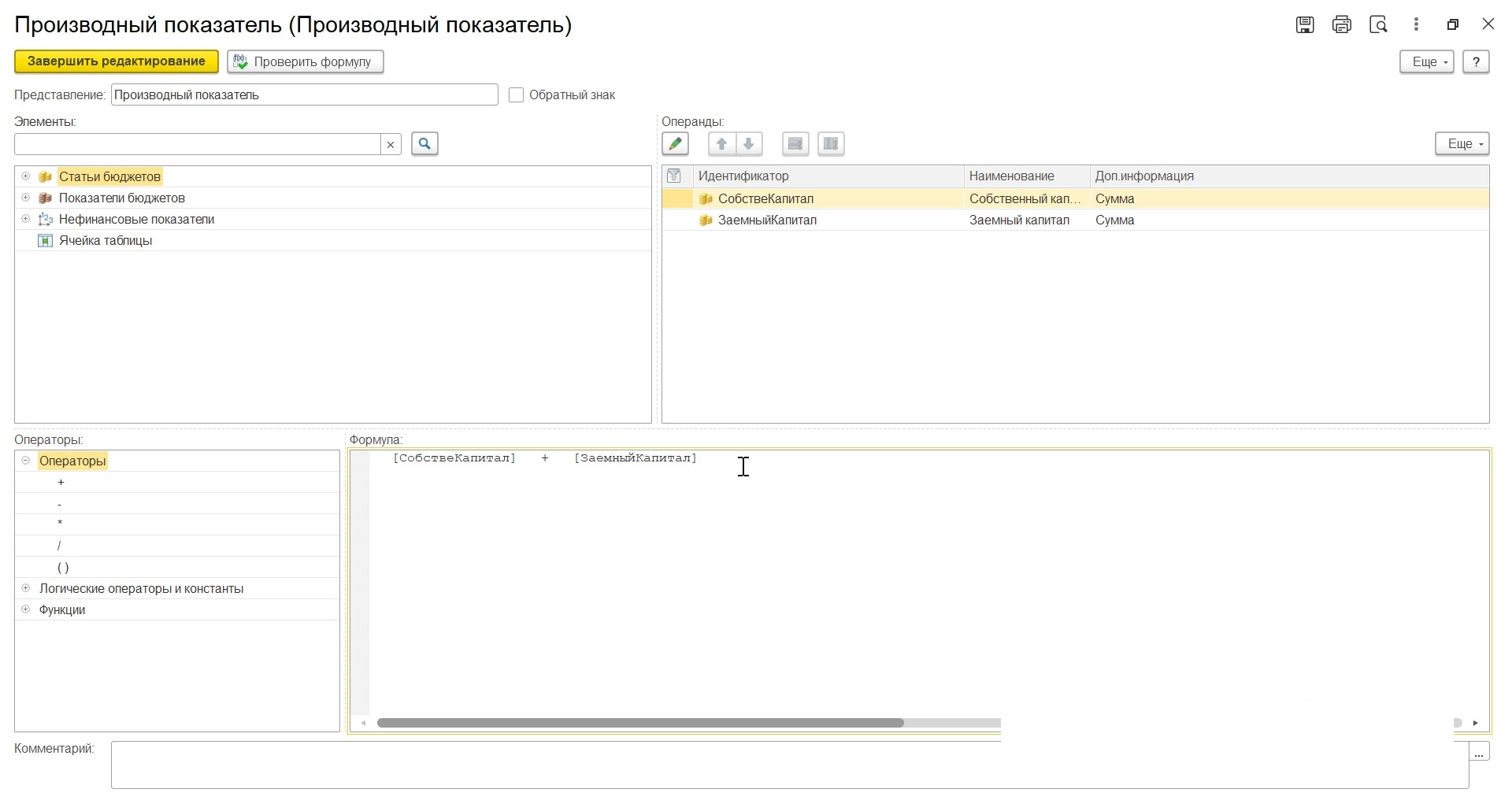 Настраиваем каждый производный показатель, выбираем операнды, которые будут участвовать в формуле, присваиваем формулу в пользовательском режиме.
