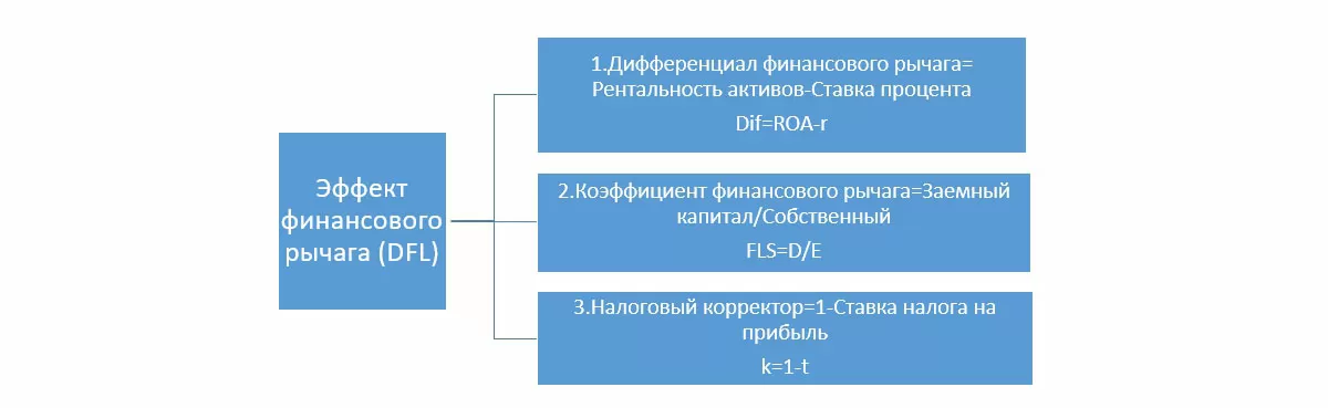 ЭФР (DFL) являет собой произведение двух выражений, которые скорректированы на величину налогового коэффициента (1 – t), который указывает, в какой степени выражается эффект финансового рычага из-за разного уровня налога на прибыль.