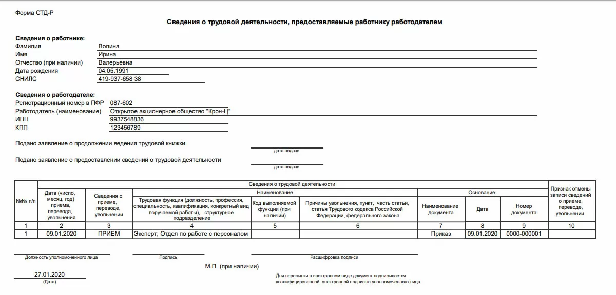 По запросу работника ему предоставляется форма СТД-Р как в распечатке, так и в цифровом формате. Бумажную СТД-Р нужно заверять подписью и печатью организации, а электронную – УКЭП.