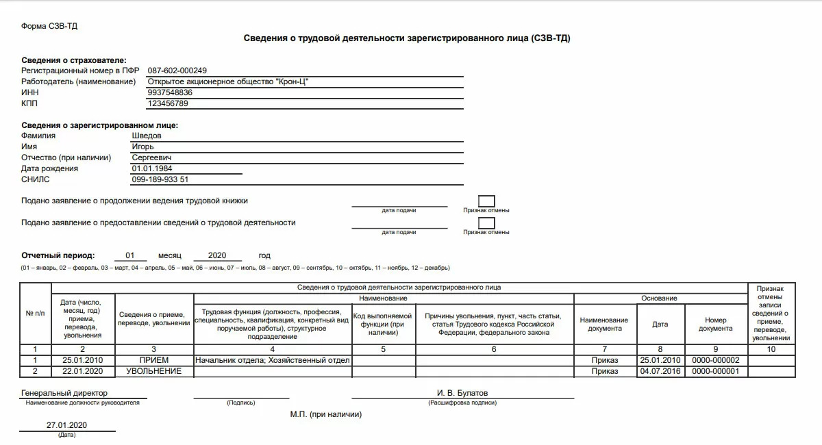Новый отчет в СФР по ЭТК – Сведения о трудовой деятельности