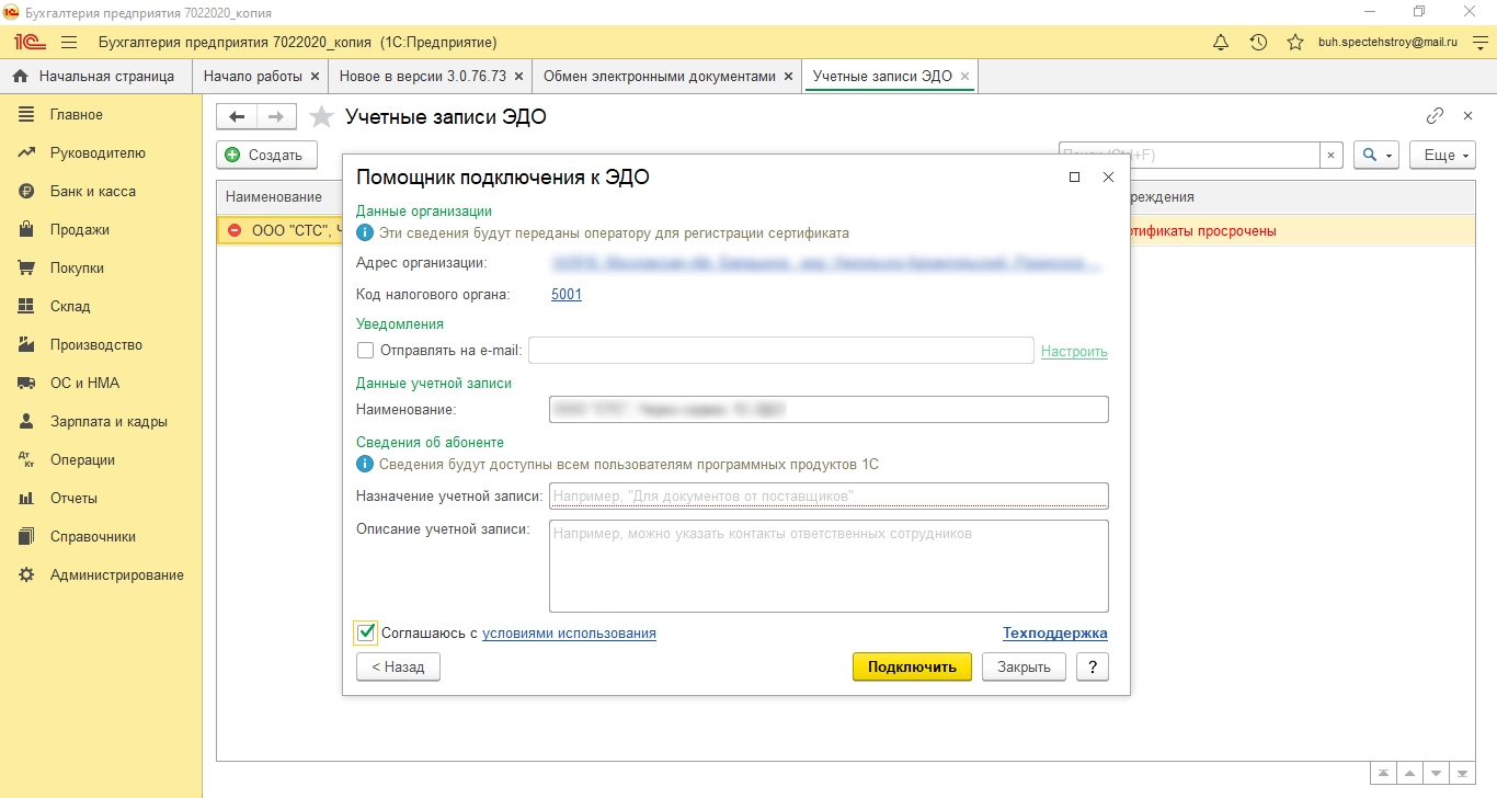 Подключение 1С-ЭДО от официального партнера 1С. Комплект документов от 250 руб./мес.Настройка в 1С-ЭДО. Электронный документооборот между организациями