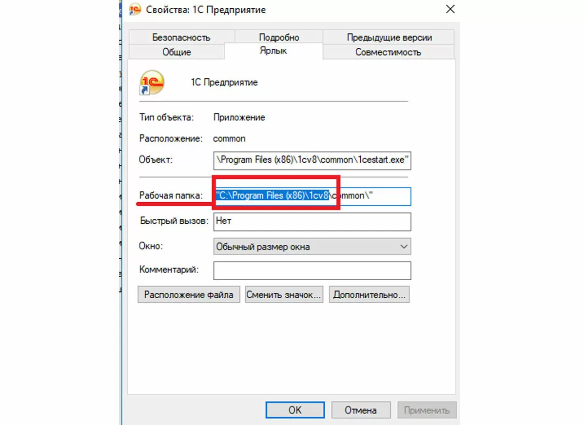 - В открывшемся окне свойств найдем путь к рабочей папке и скопируем его (ту часть, что выделена на рисунке);