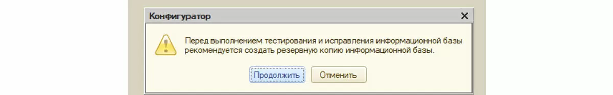 Если резервные копии базы отсутствуют и восстановить базу из копии невозможно, 1С выдает ошибку «Файл базы данных поврежден», но программа может быть открыта в режиме «Конфигуратор». Здесь можно попробовать исправить ошибки базы при помощи тестирования и исправления.