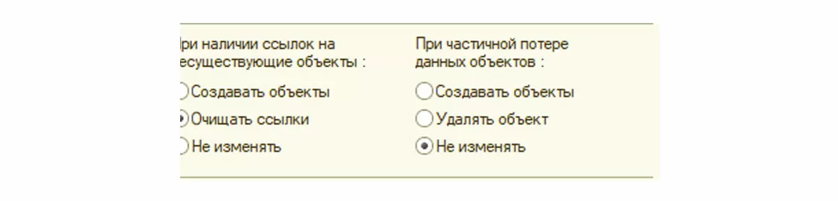 Это тоже зависит от наших настроек. При наличии ссылок на удаленные объекты, либо при частичной потере объектов, система может: