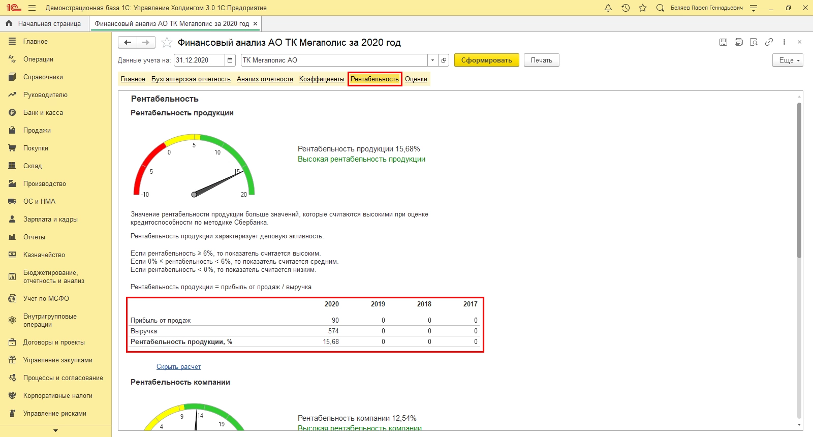 Факторный анализ рентабельности в 1С:Управление холдингом