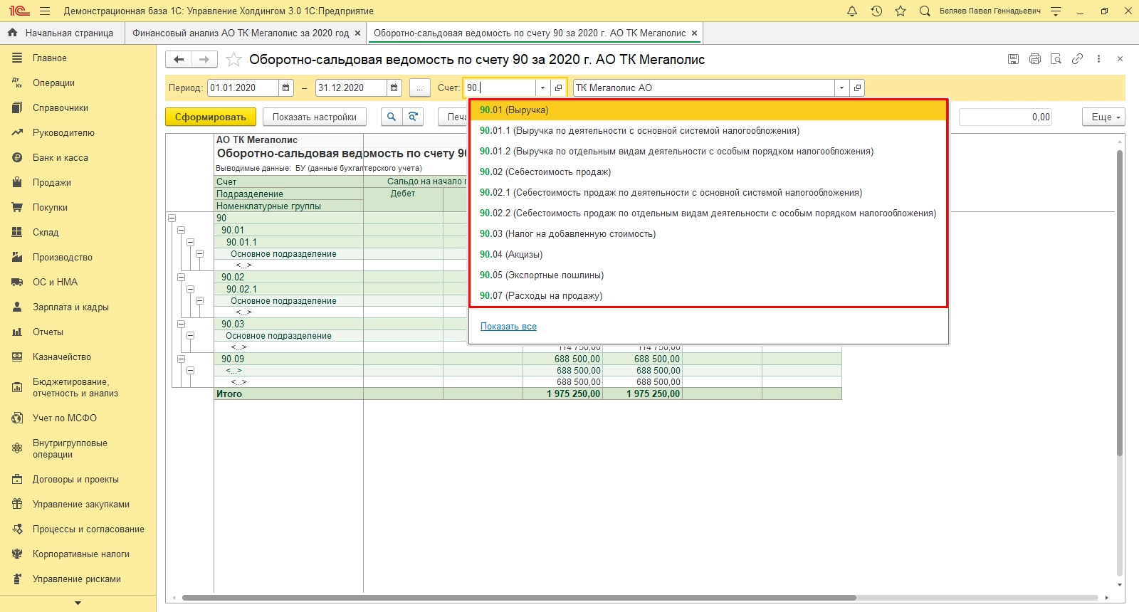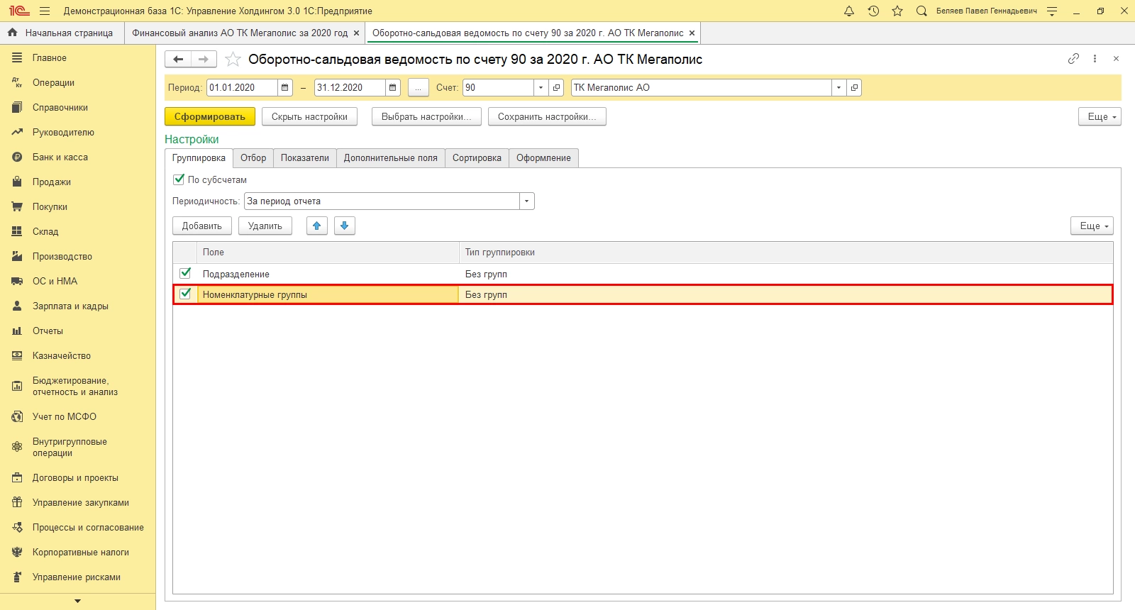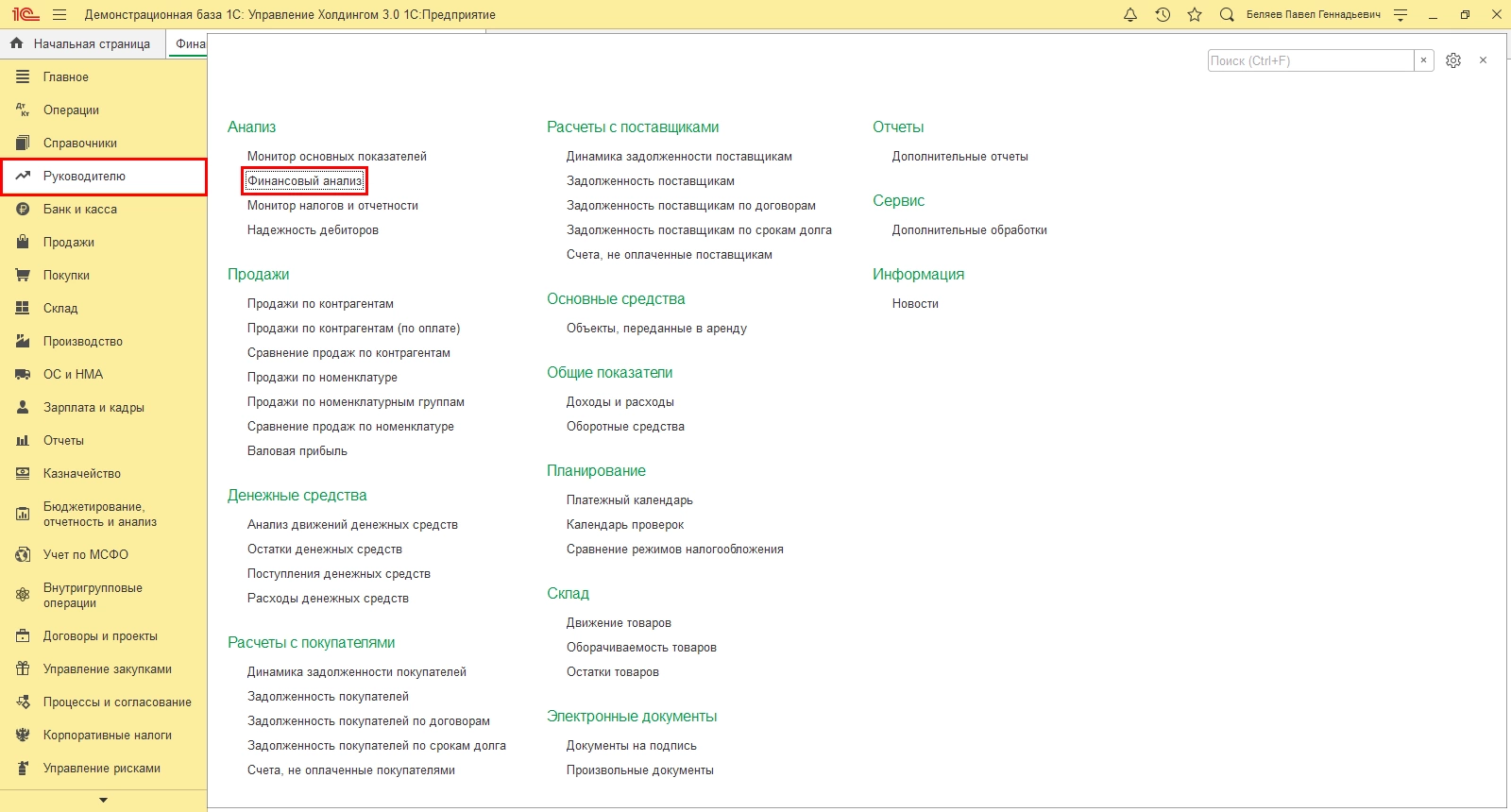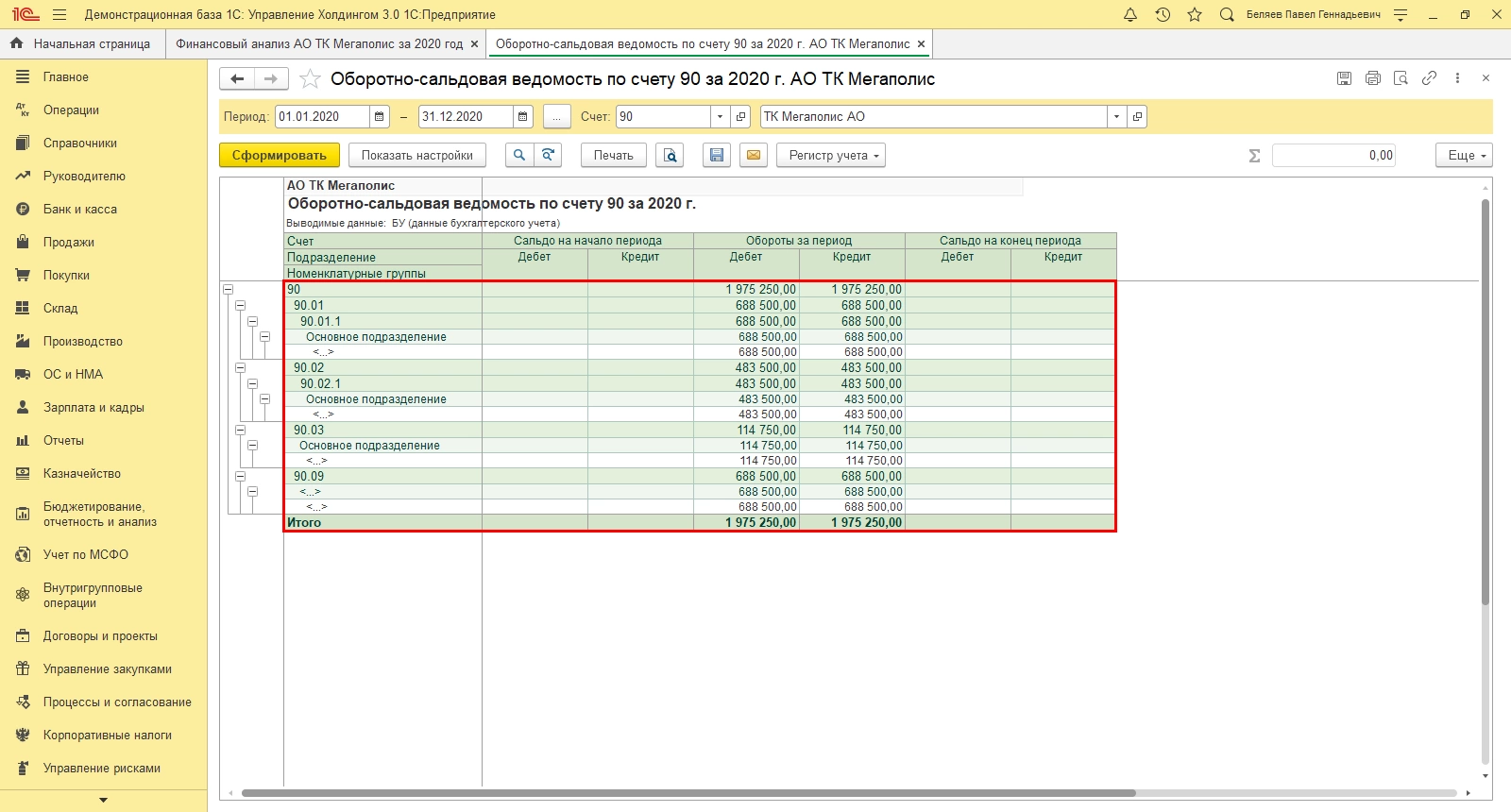 Пример анализа 1С:ERP