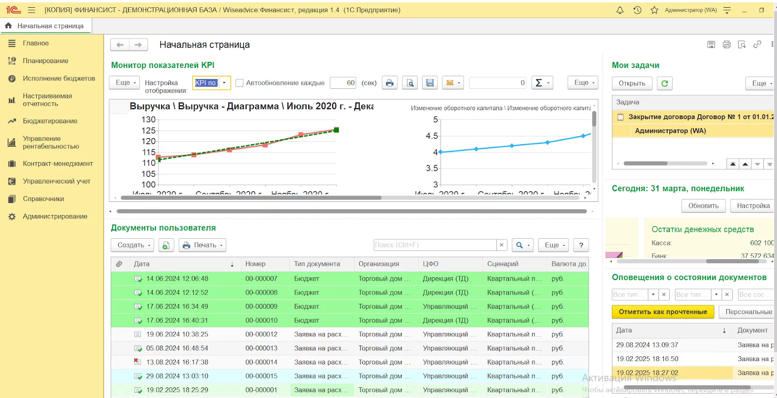 - WA:Финансист – модульная система управленческого учета на базе 1С Предприятие, предназначенная для управления финансами, бюджетирования и казначейства. Она позволяет планировать, анализировать и контролировать финансовые процессы, а также составлять отчетность по МСФО.