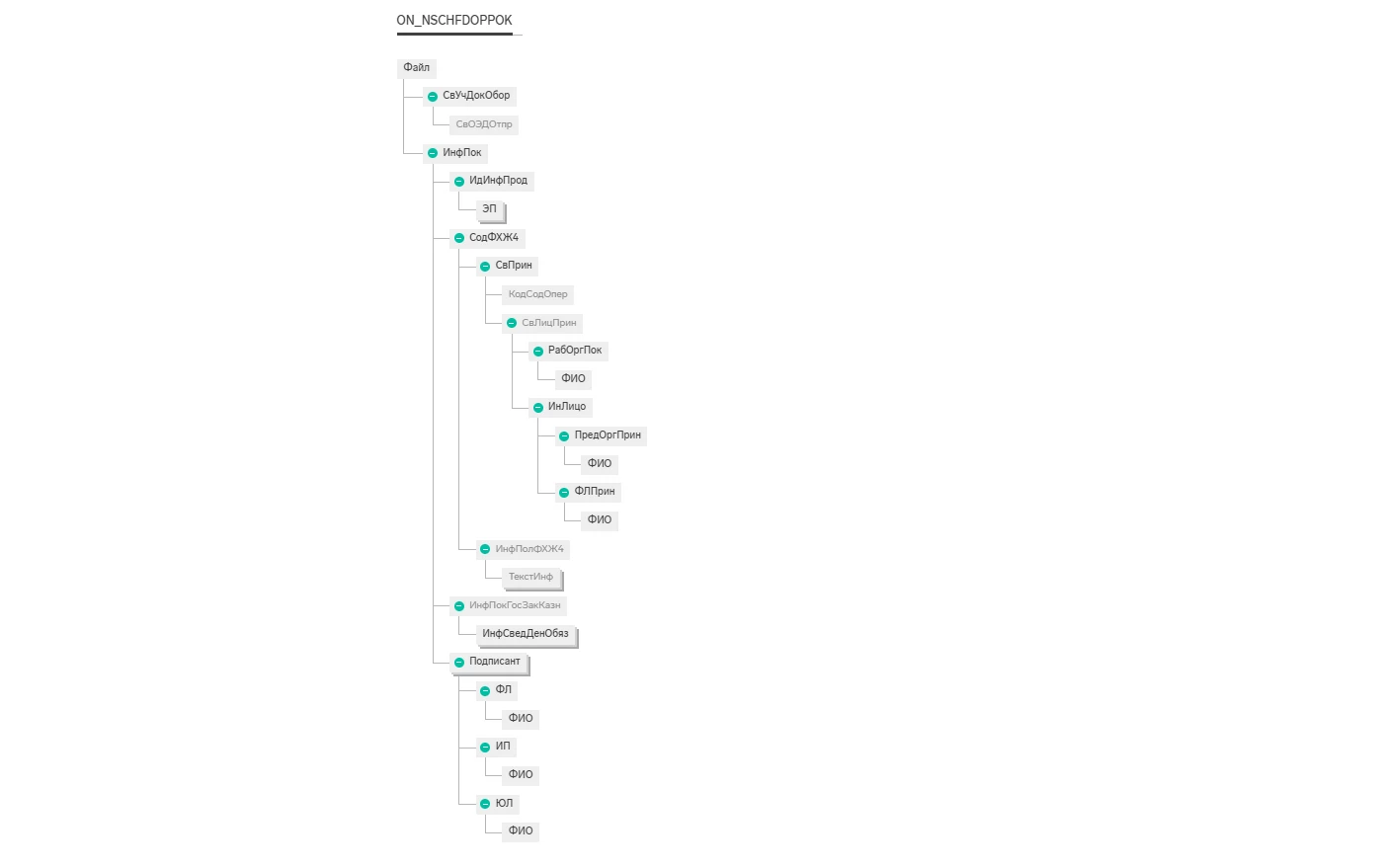 На рисунке 1 показана XML-схема УПД покупателя (получателя документа), где можно заметить разные шрифты написания блоков. Жирным отмечены обязательные для заполнения элементы структуры, а невзрачным – необязательные.