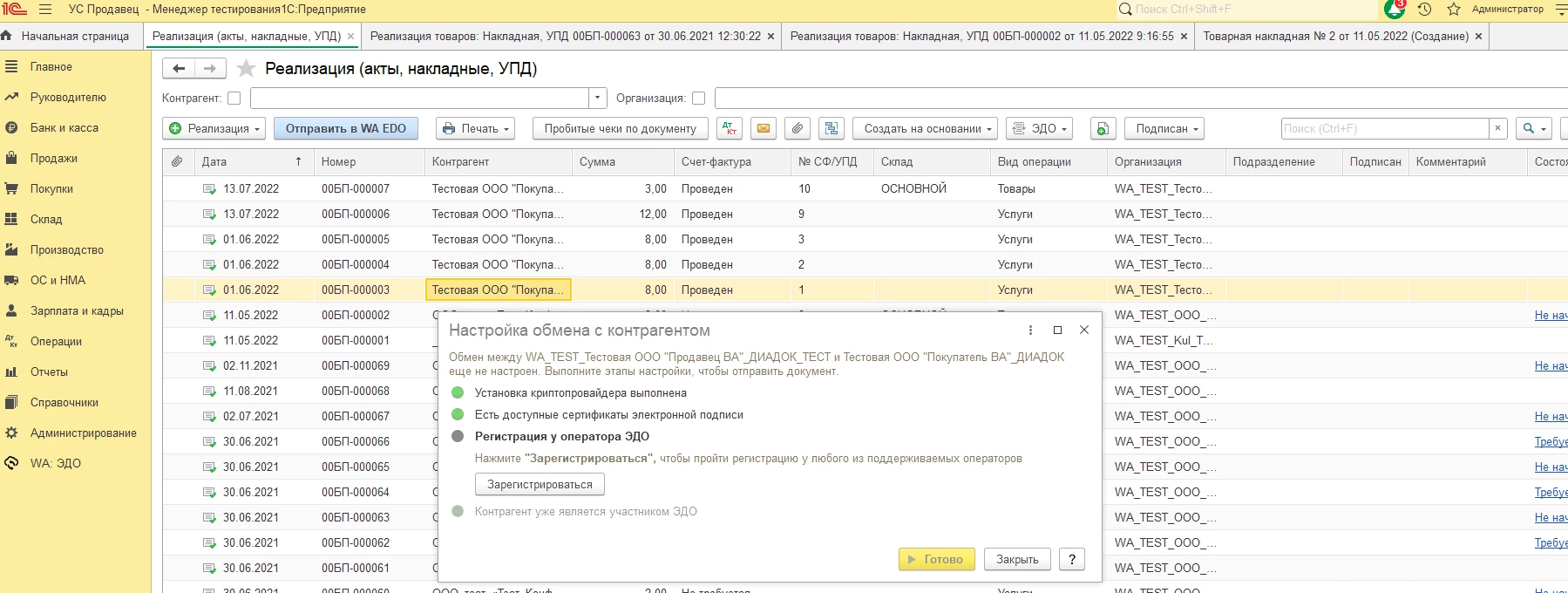 - Если мы хотим сформировать документы УПД со статусом 1 или 2, то такие документы требуют ответную подпись получателя.