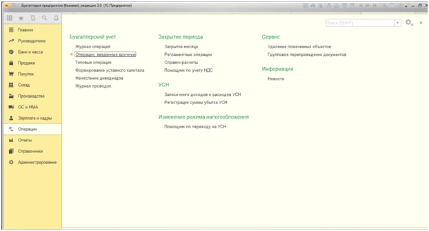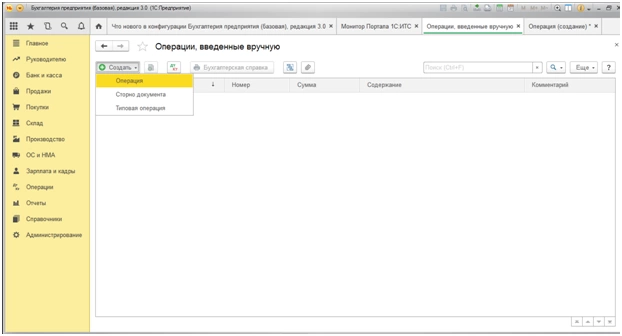 В открывшемся окне нажимаем на кнопку «Создать» - «Операции».