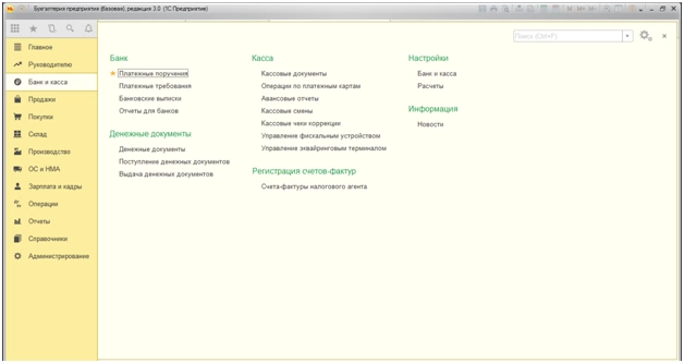 Для этого перейдем в меню «Банк и касса» - «Платежные поручения».