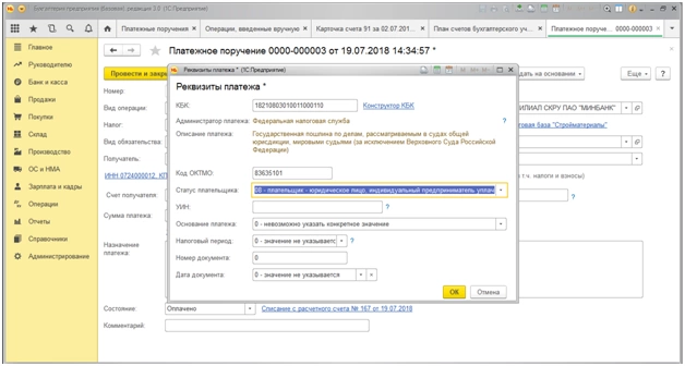 Частью 3 Статьи 333.18 Налогового Кодекса РФ установлено, что государственная пошлина уплачивается как в наличной, так и безналичной форме. При осуществлении наличной оплаты госпошлины вопросов у бухгалтеров практически не возникает, так как подотчетное лицо, которому выданы средства, представляет оправдательные документы. Сегодня мы рассмотрим возможности программы 1С:Бухгалтерия в части отражения госпошлины, провести ее оплату и вытекающие из этого проводки в 1С 8.3.