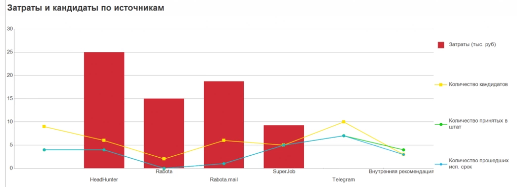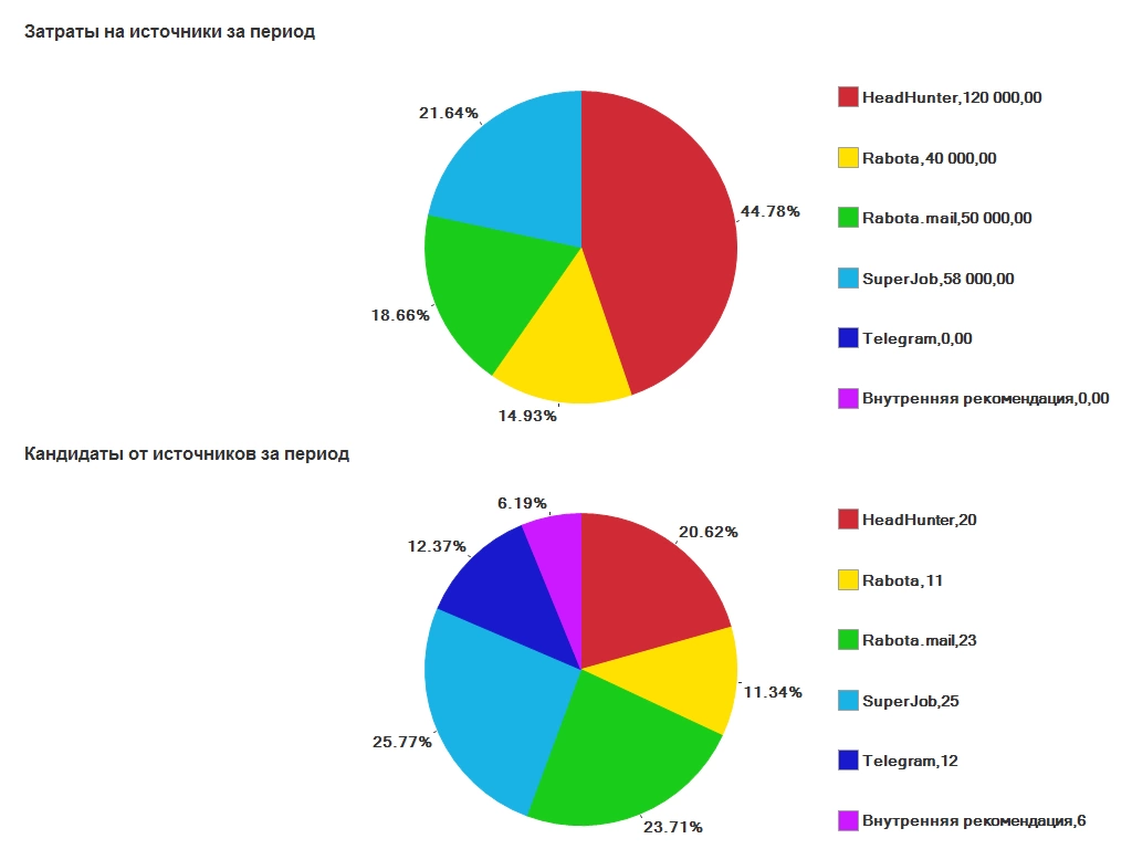На рисунке ниже в качестве примера приведены отчеты, позволяющие оценить затраты по источникам информации о кандидатах.