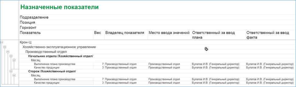 Назначенные показатели выводятся в соответствующем отчете.