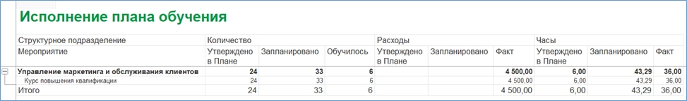 Исполнение плана обучения контролируется соответствующим отчетом.