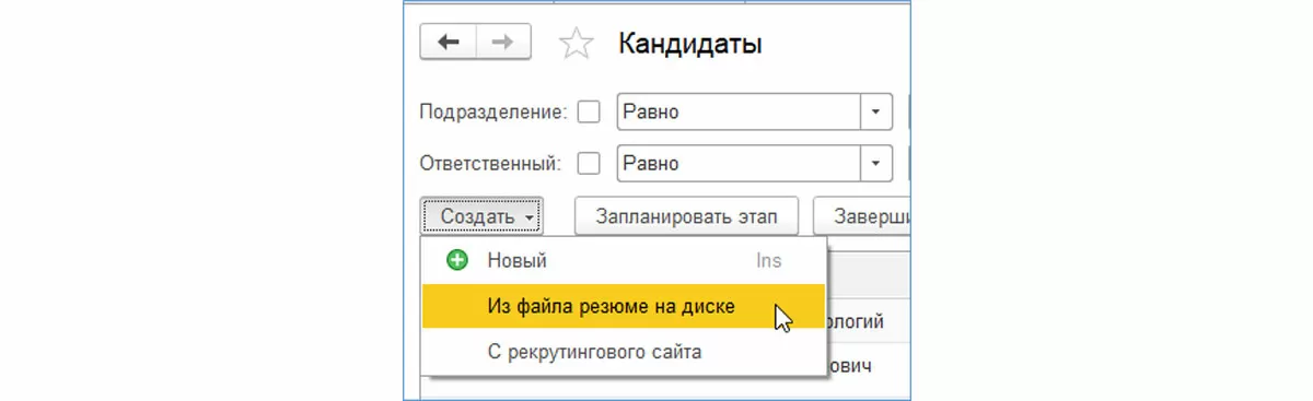 Приведем несколько примеров. Резюме кандидатов можно загрузить из файла формата «.doc» или напрямую из Интернета. При этом система автоматом разнесет данные резюме по соответствующим разделам элемента справочника «Кандидаты», то есть поможет избежать ручного ввода.