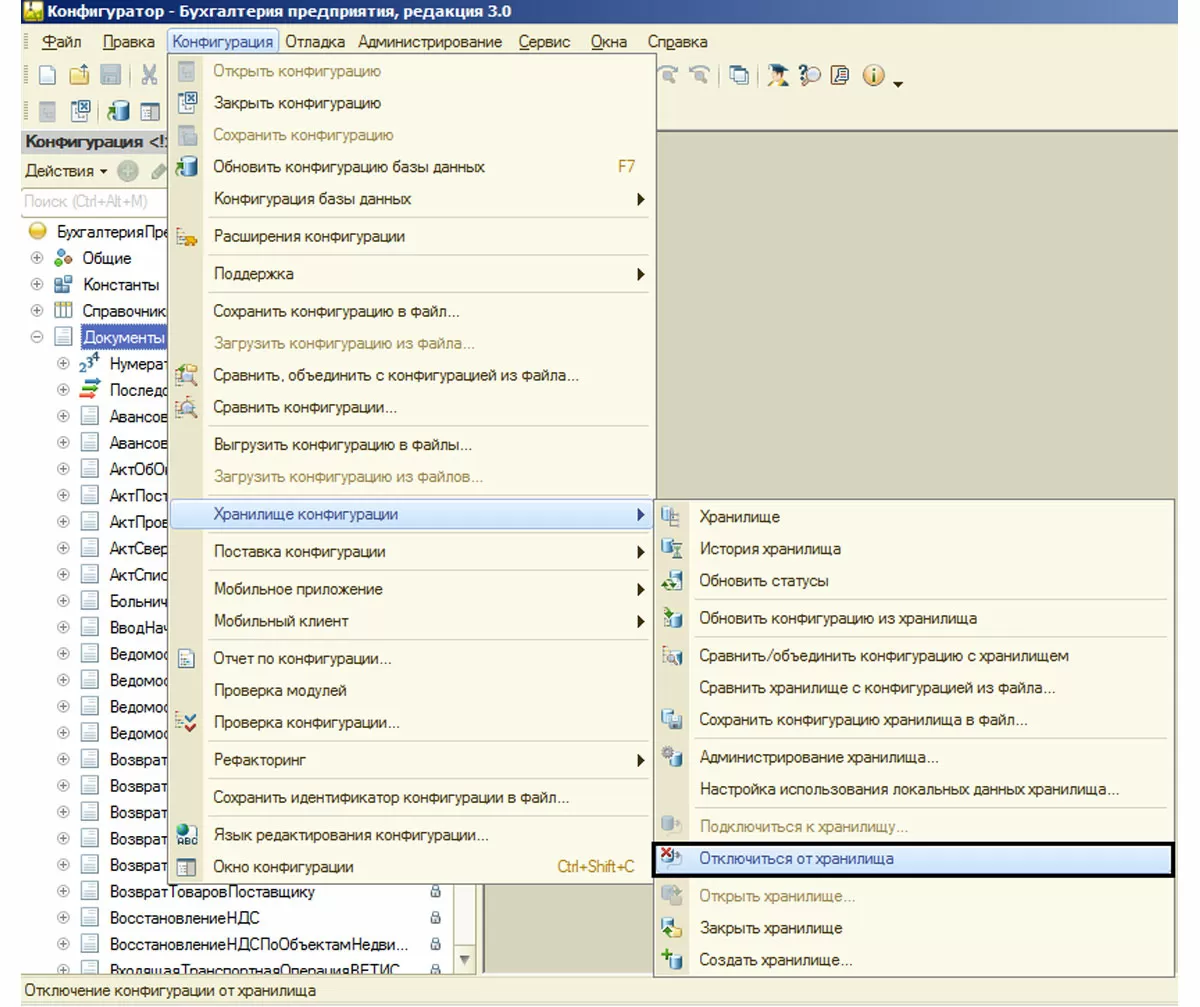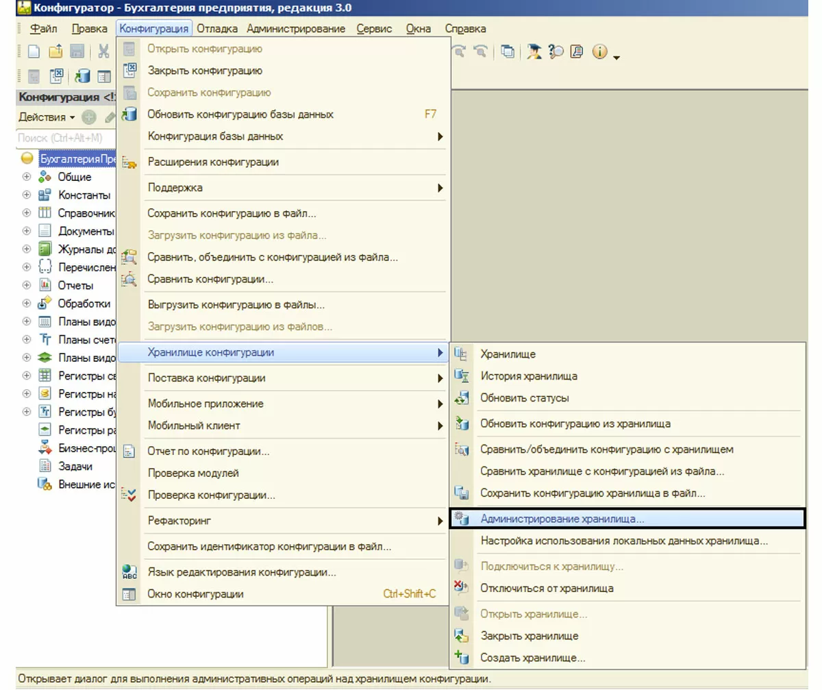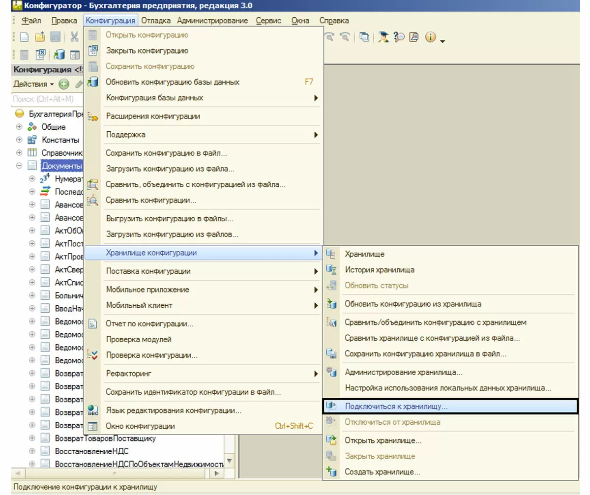 Как подключиться к хранилищу конфигурации 1С 8.3