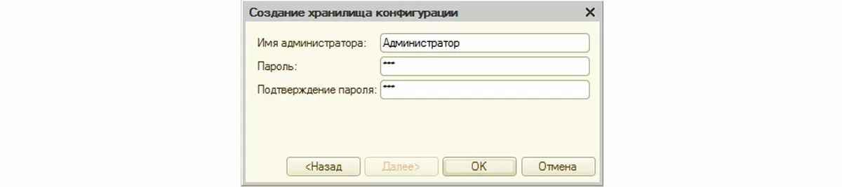 После нажатия кнопки «Ок» начнется процесс создания хранилища конфигурации.