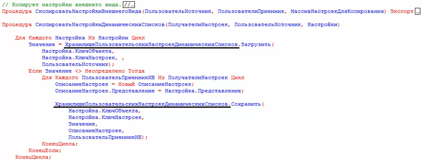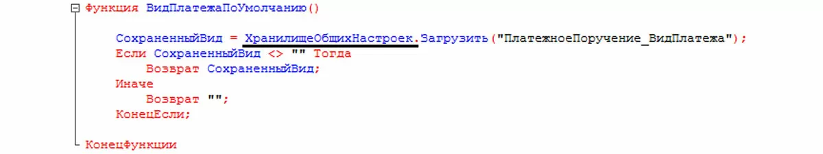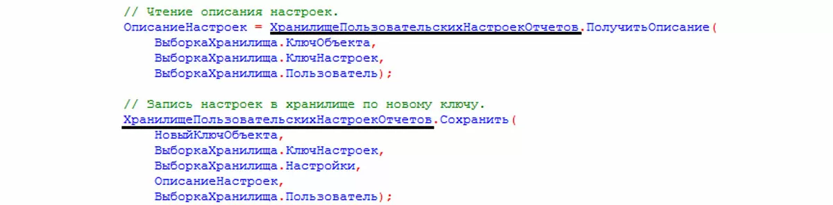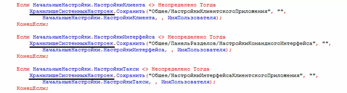 ХранилищеОбщихНастроек – с его помощью организовано хранение и доступ к общим настройкам программы. Этот вид хранилища не используется платформой самостоятельно. Он может использоваться разработчиком, чтобы хранить параметры, заданные пользователем. Пример использования в коде.
