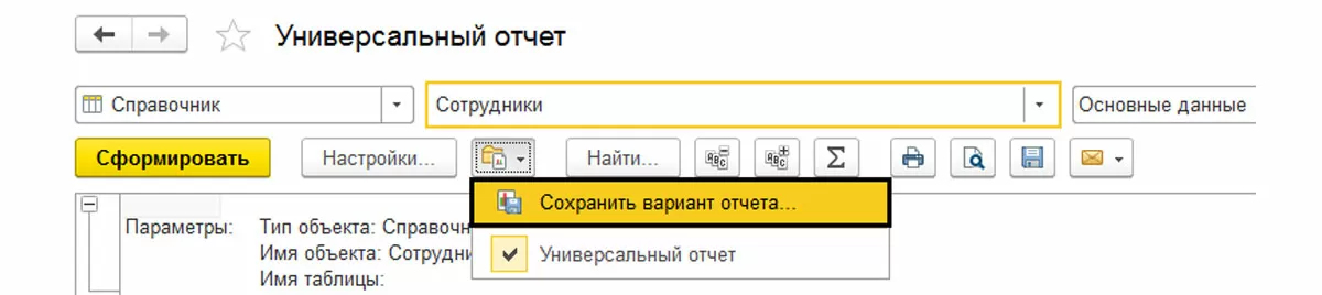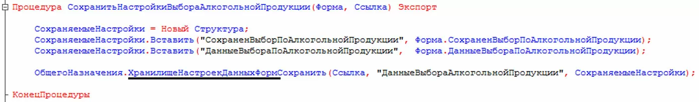 Так, разработчиком может быть организовано хранение параметров. В свойствах конфигурации или объекта указывается, что оно будет использовано для хранения установок формы.