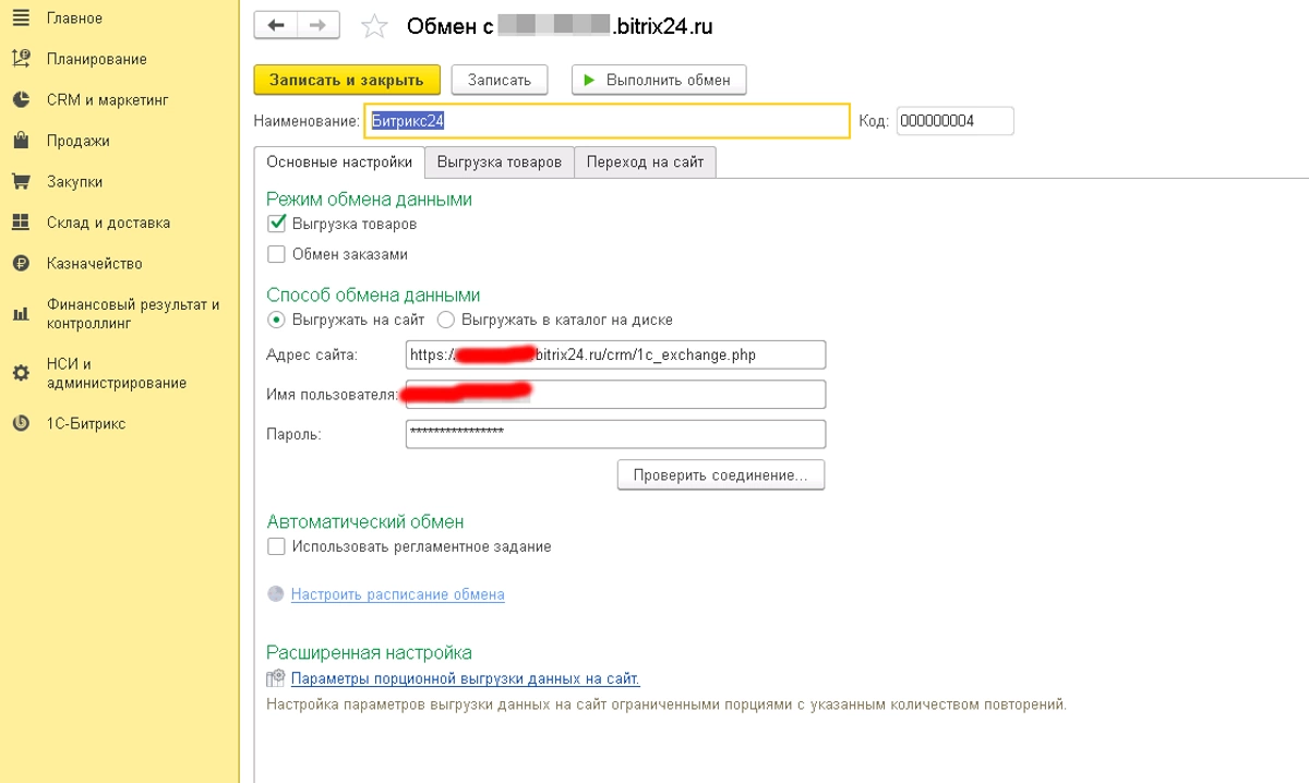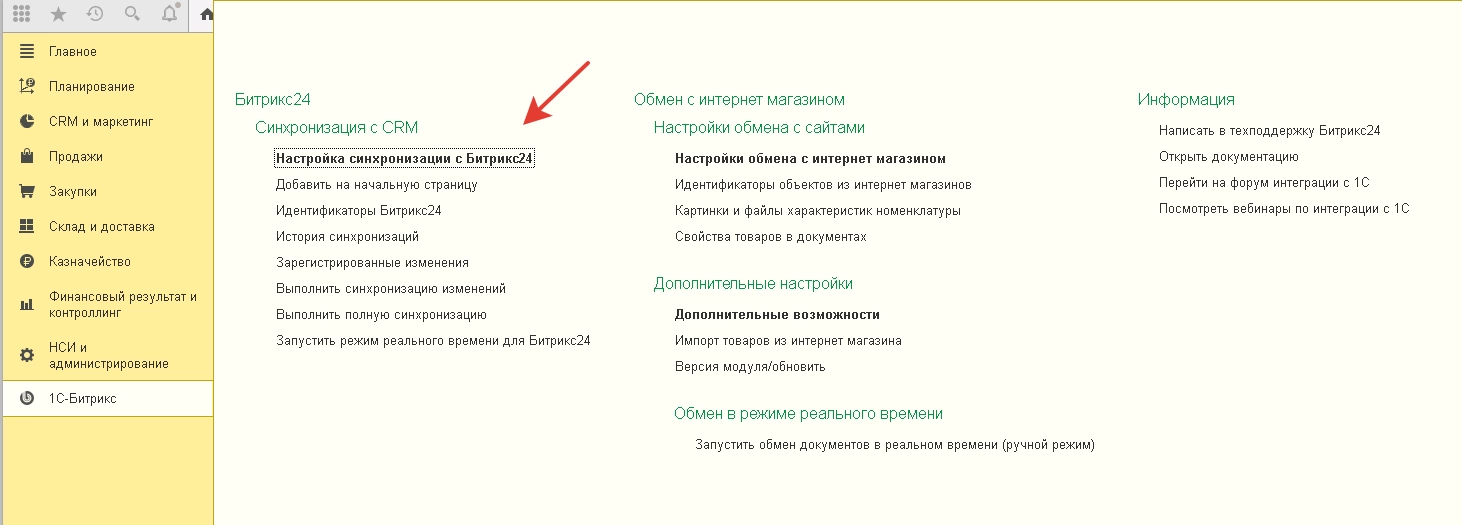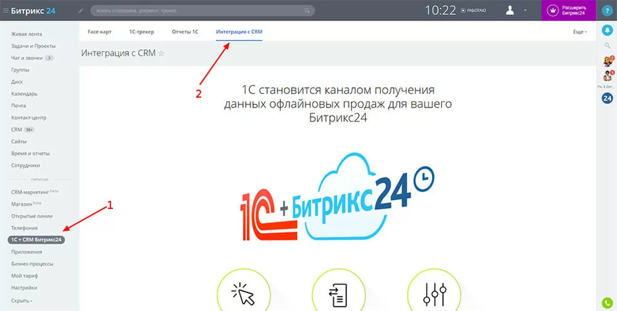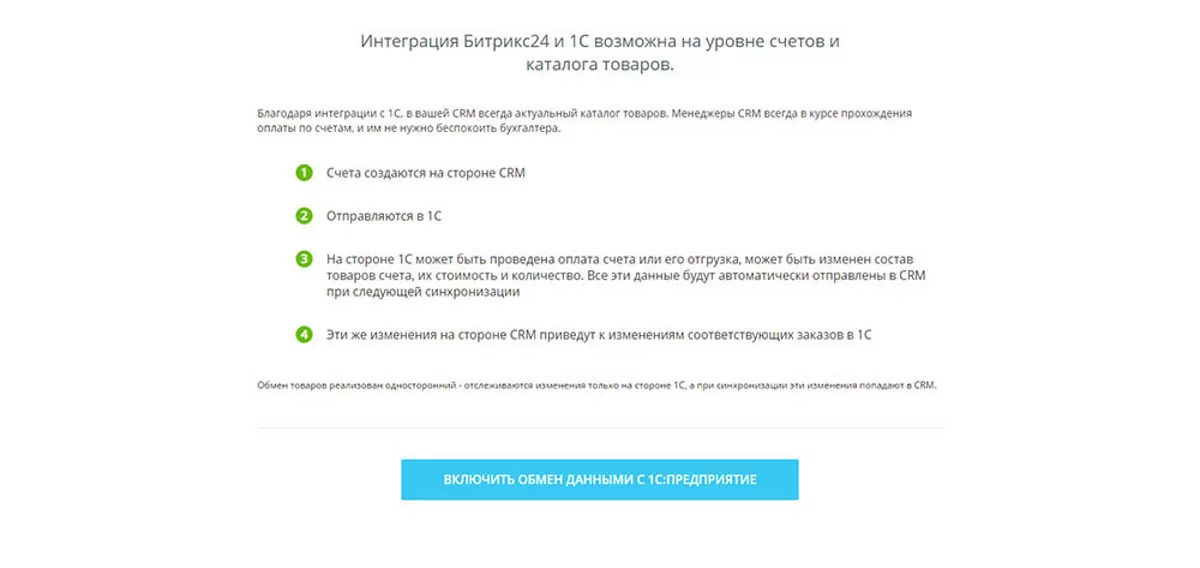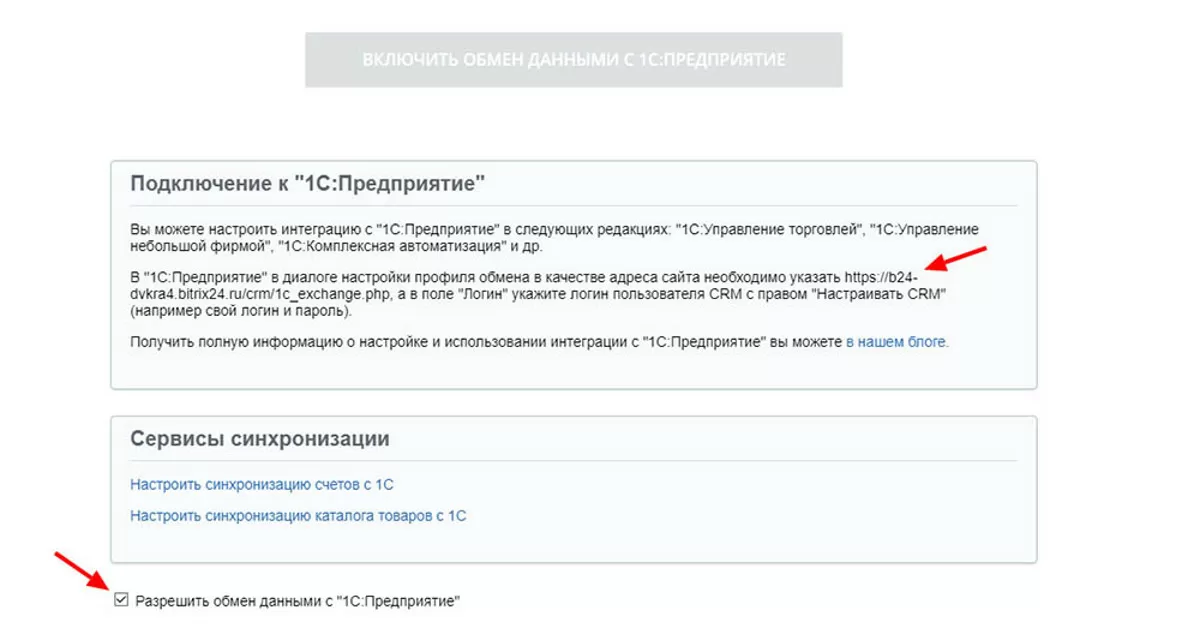 Этап 1: Активация обмена данными с 1С:Предприятие в Битркис24
