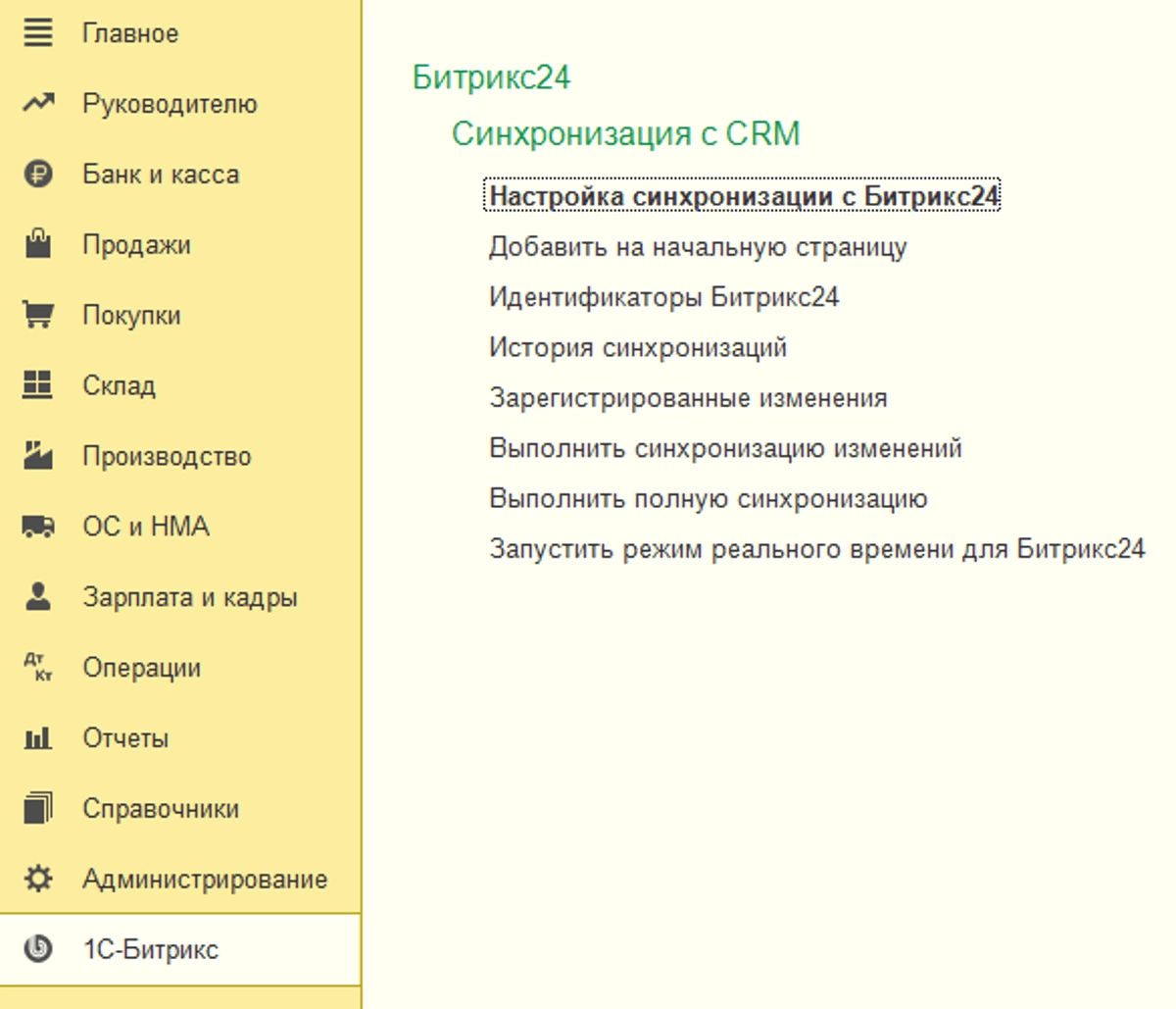 - Настройка синхронизации с Битрикс24. Содержит все главные настройки синхронизации;