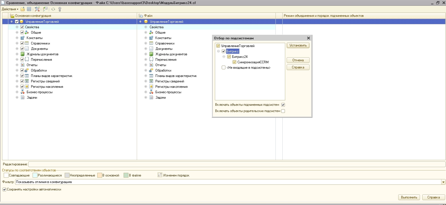 - Выполнить синхронизацию изменений. Активирует обмены данными в режиме изменений;