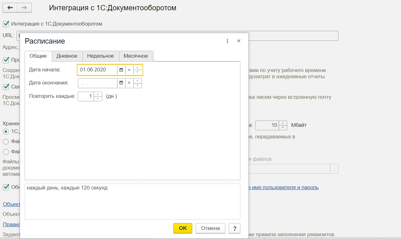 - Ввести URL опубликованной базы 1С:Документооборот, с которой необходима интеграция;