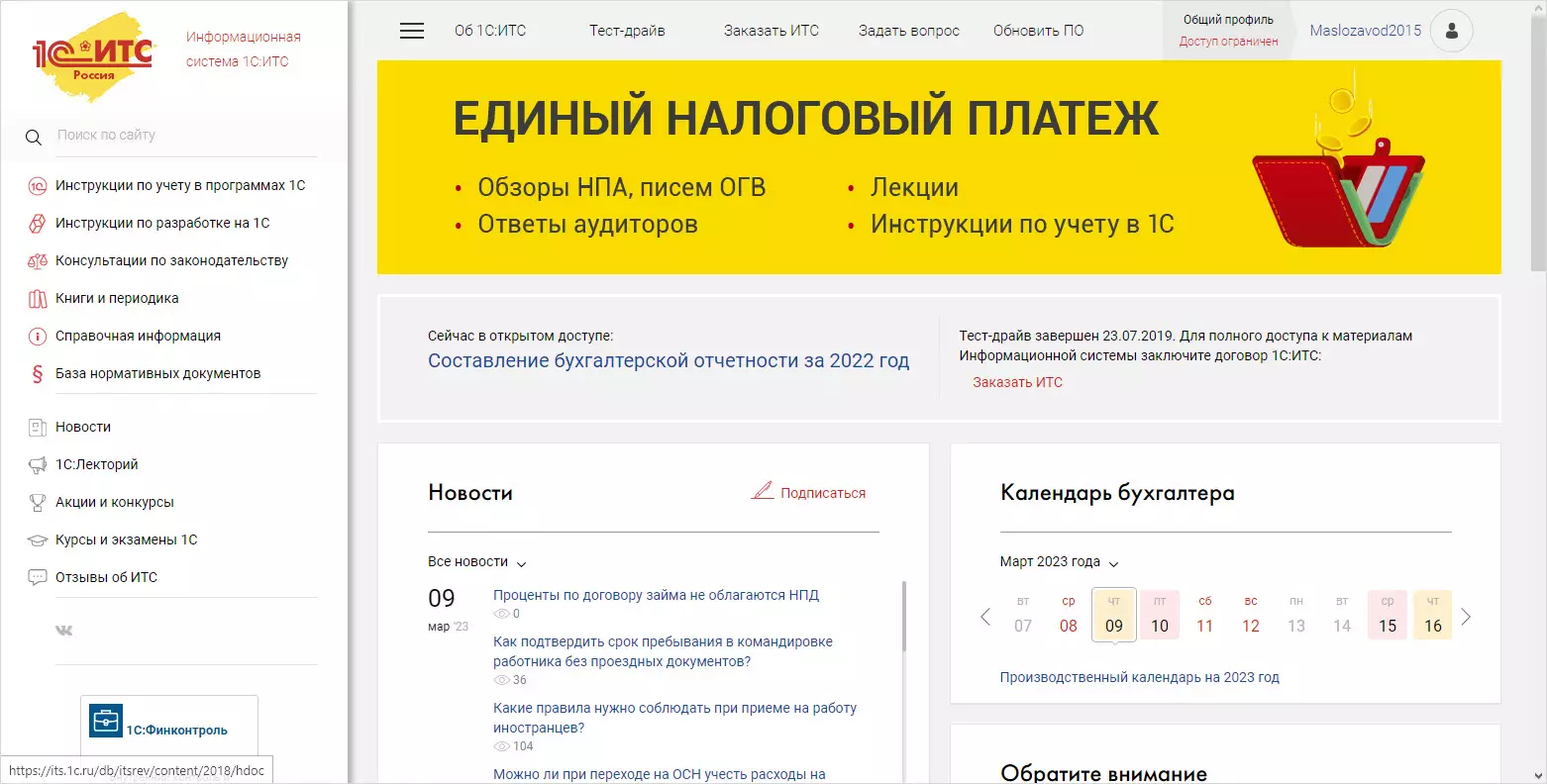 - По ссылке Информационно-технологическое сопровождение можно перейти на сайт ИТС, авторизовавшись автоматически под введенным логином.
