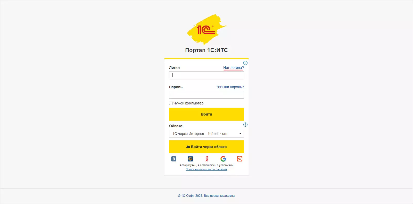 При входе на портал производится авторизация и в случае, если кабинет не создавался, для регистрации необходимо нажать Нет логина.