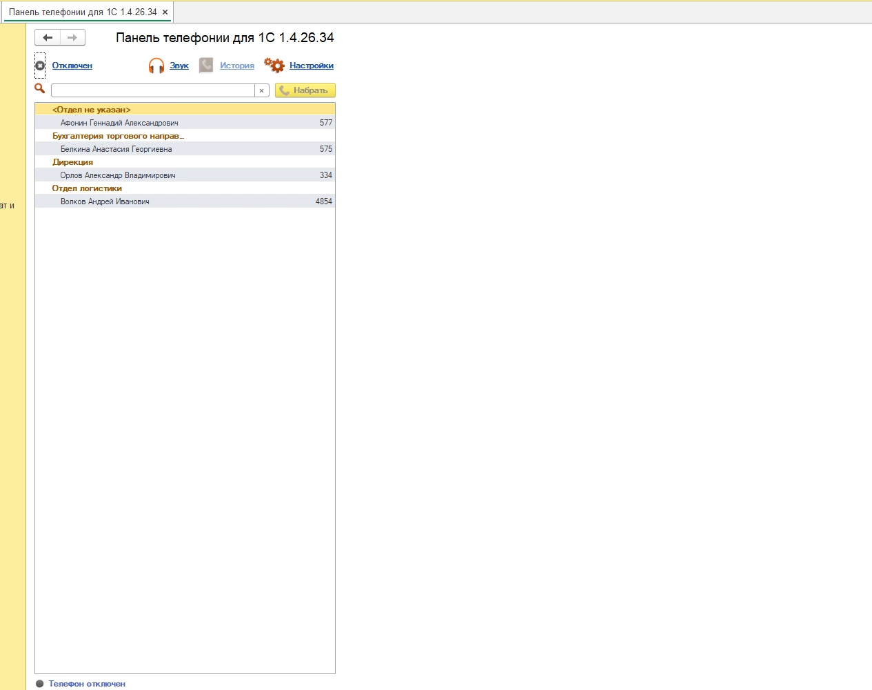 Панель телефонии может быть встроена в конфигурацию 1С, а может использоваться как внешняя обработка. Множество разработчиков предлагают свои продукты, которые могут подключаться к любому провайдеру и позволяют звонить непосредственно из 1С. Входящий звонок при этом отображает карточку клиента.