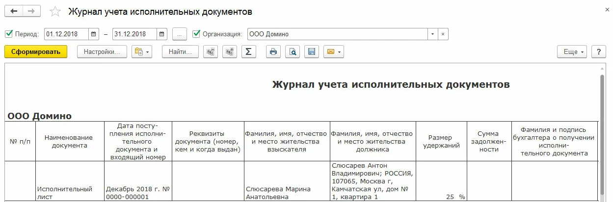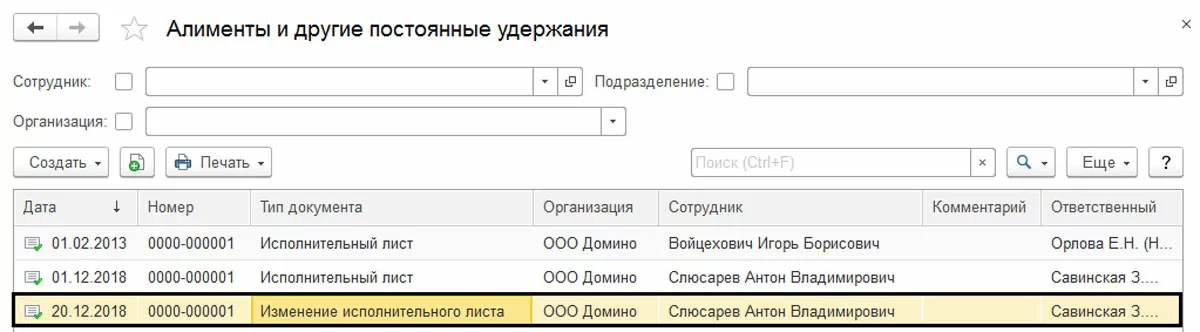 Сохраненный документ будет доступен в журнале «Алименты и другие постоянные удержания».