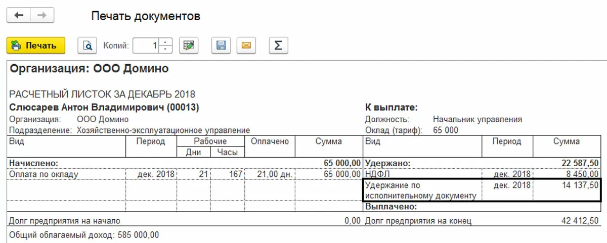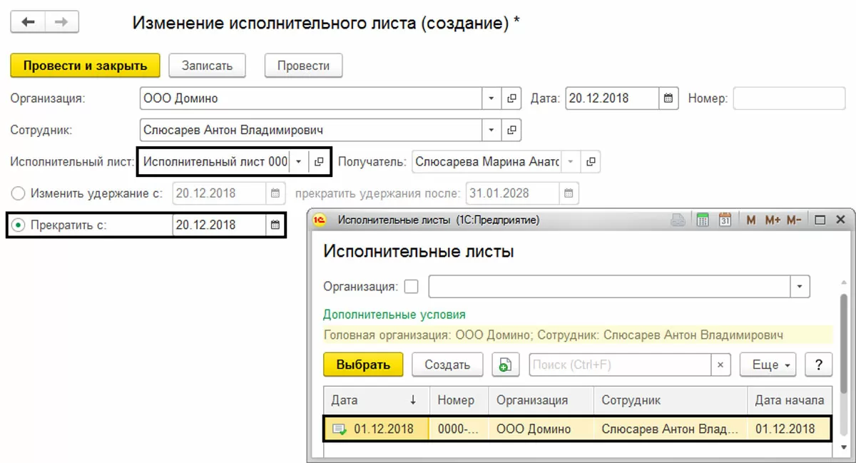 После проведения, программа автоматом при начислении будет производить удержание по исполнительному листу. 1С все сведения по этой теме отразит в «Удержаниях».