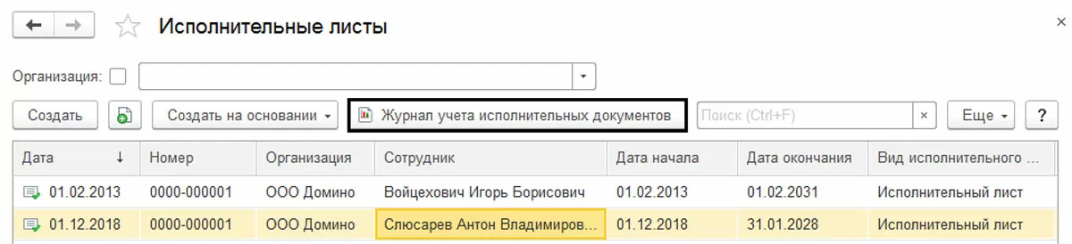Из журнала «Исполнительные листы» можно распечатать «Журнал учета исполнительных листов».
