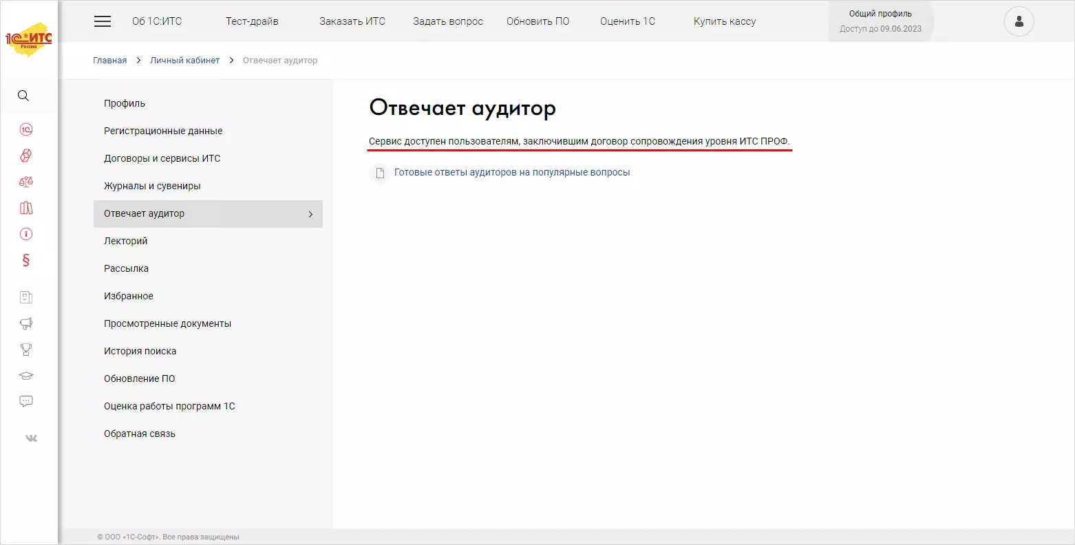 Если пройтись по другим разделам ИТС, то видно, что для базового уровня подписки они недоступны.