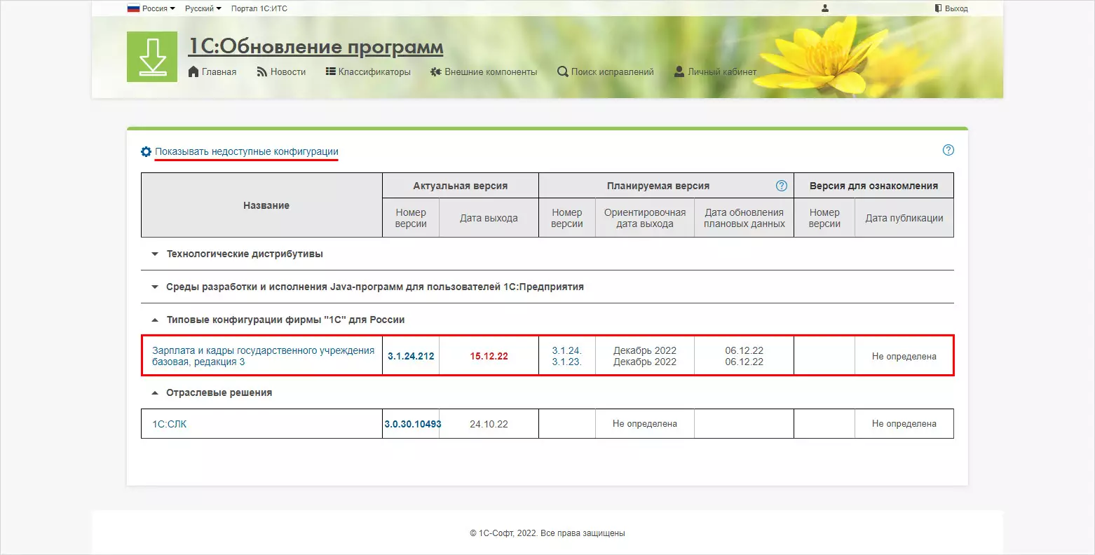 При отсутствии подписки данные ссылки неактивны и к обновлению конфигурации, на которую не оформлена подписка ИТС, доступа нет. Она скрыта в списке недоступных конфигураций.