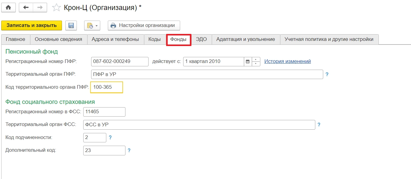 Здесь же можно внести данные по государственным фондам ПФР и ФСС.